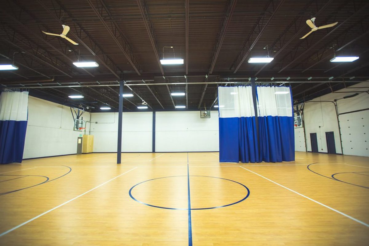 This indoor basketball court is one of two provided at this multi purpose facility. The courts floors are vinyl overlay on top of a cushioned base creating authentic sports feels no matter the activity. The facility is happy to offer regulation nets for basketball, hockey and volleyball which all will meet the needs of both amateurs and professionals. With two courts available for rental we’re able to accommodate large and small groups of individuals.
