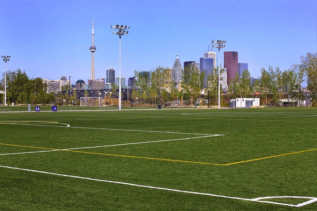 Cherry Beach Sports Field features two regulation-sized elite soccer and lacrosse fields help meet the high demand for playing fields in Toronto. These state-of-the-art fields can accommodate a wide range of recreational activities including field hockey, football and ultimate Frisbee in addition to soccer and lacrosse. The sports fields can be accessed by entering via Unwin Ave. on the far south east side of Regatta Rd. and parking is is located at 115 Unwin Avenue, on the western edge of the fields. The sports fields also has a sophisticated lighting system designed to not disrupt migratory birds flying overhead (there is no light cast off or light spillage into the sky). In addition to only illuminating the fields, the lighting also extends play hours. To reserve playing time, please visit the City of Toronto’s website or call the City of Toronto information service 311 for more information on obtaining a permit.
