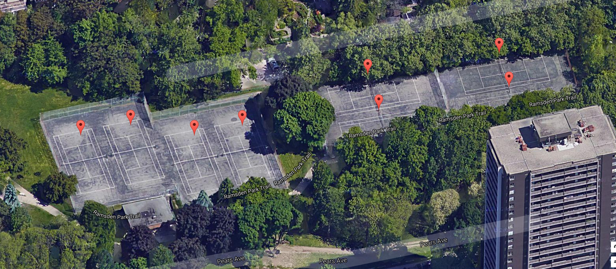 Ramsden Park is a public park located at 1020 Yonge Street in Toronto, Ontario, Canada, with access via Ramsden Park Road and Pears Avenue. This park is part of Toronto's history where from the 1840s to the 1890s this was the location of the Yorkville Brick Yards. The yellowish-white bricks produced were used for many buildings in the village and city including Yorkville Town Hall, St. Michael's Cathedral, St. James Cathedral and much of University College. In 1904 the City purchased the land and established a park named after Alderman J. George Ramsden, a local resident who was active in city politics from 1903 until 1936. This tennis court is one of twelve available at the park. Please note that casual tennis play is on a first come, first served basis and may be subject to closure and unavailability during winter seasons.