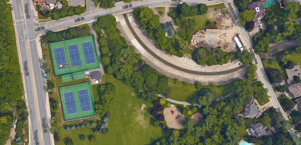 This tennis court is one of five at this popular park near Yonge Street and York Mills Road. The location also features green space. Please note that casual tennis play is on a first come, first served basis and may be subject to closure and unavailability during winter seasons.
